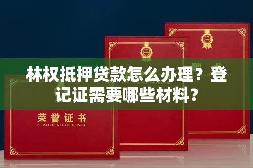林权证书 贷款合同 身份证明 林地评估报告林业主管部门会对这些材料进行审核,审核通过后,会为你办理抵押登记,并颁发抵押登记证。